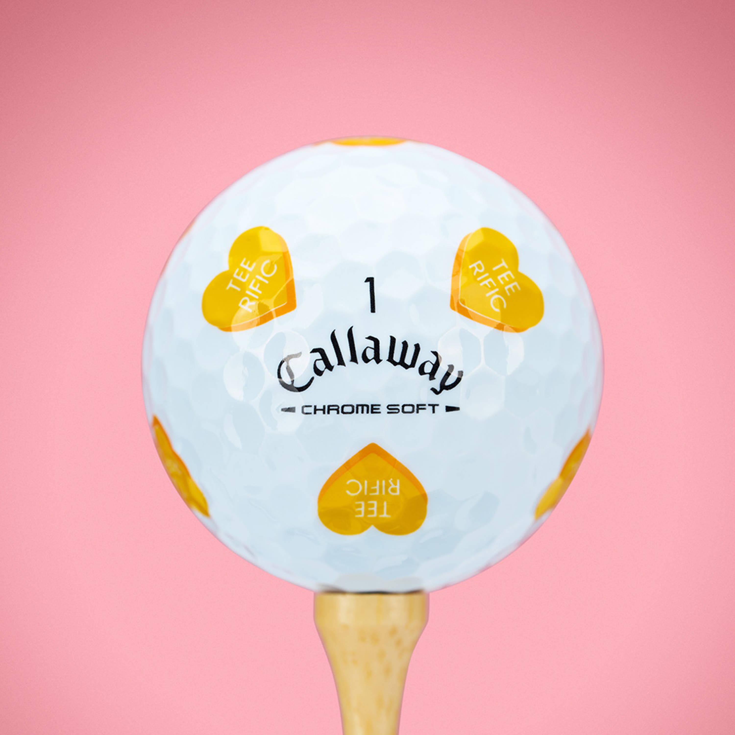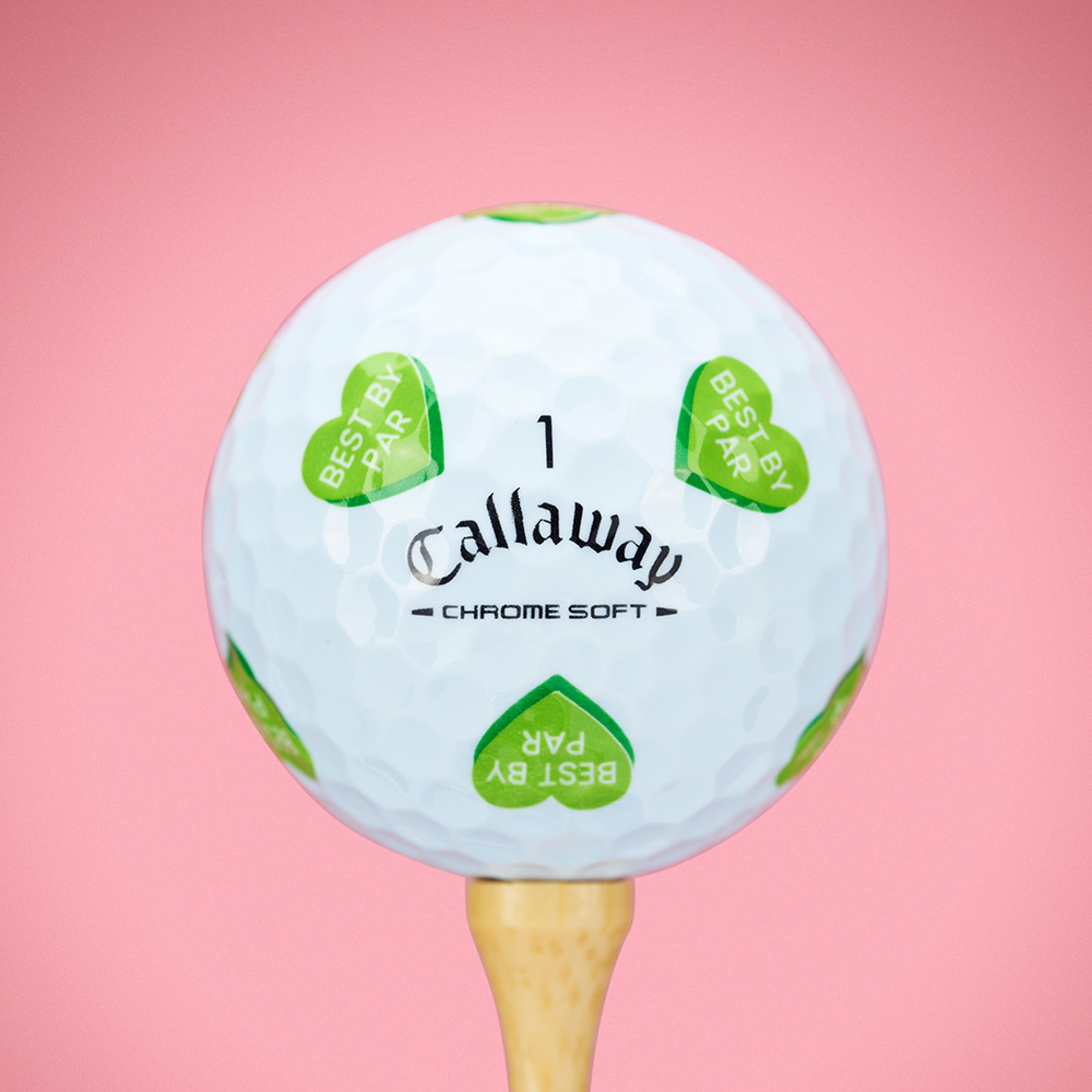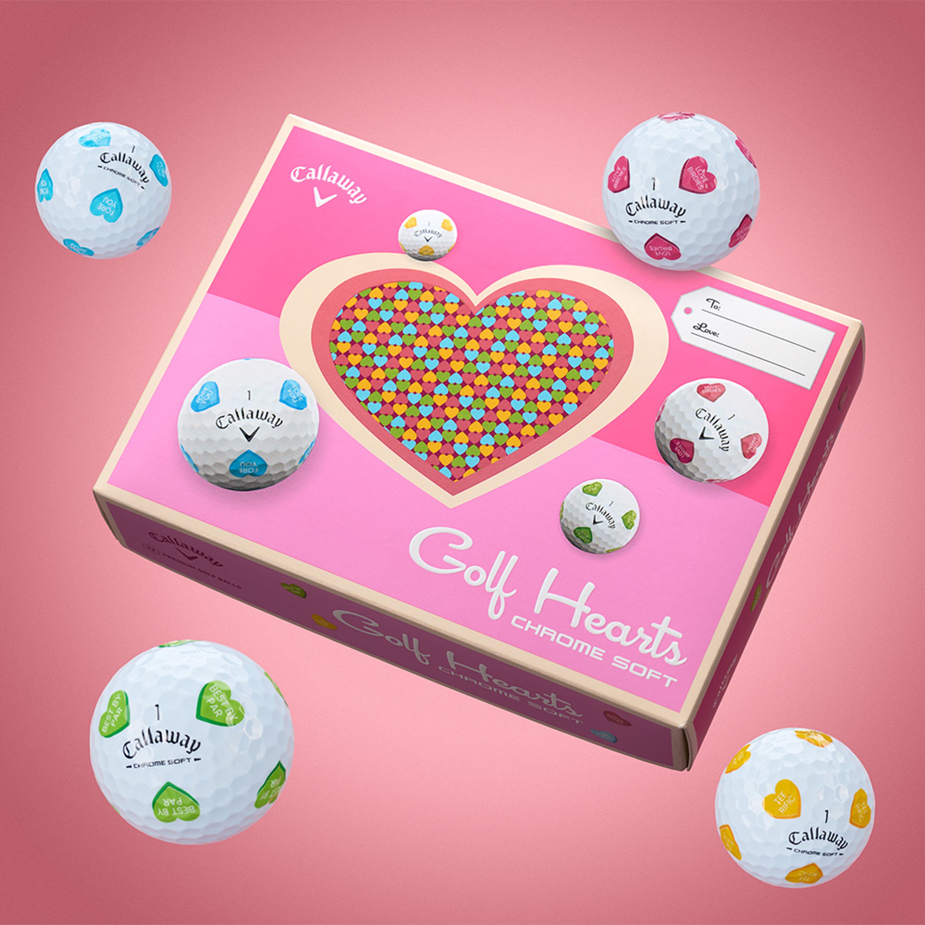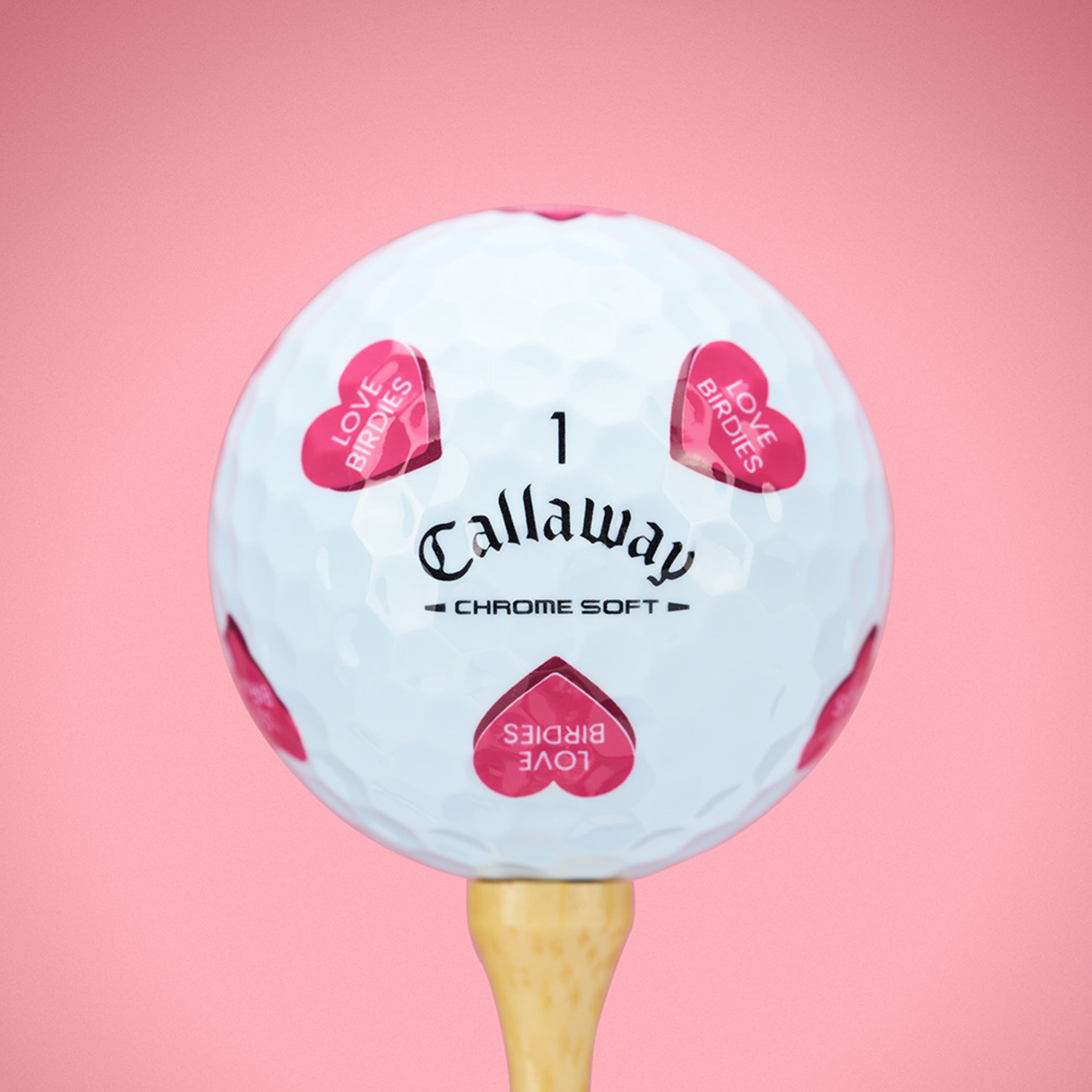Love at first swing. Chrome Soft Golf Hearts brings playful designs to the course with golf-inspired love messages. Made Fore You and anyone chasing Love Birdies, this collection adds fun and personality to every round. This limited-edition drop helps you play the Best by Par and feel Tee-rific along the way, all paired with the tour-level performance of the new 2026 Chrome Soft for fast ball speeds, high flight, greenside control, and that signature soft feel.