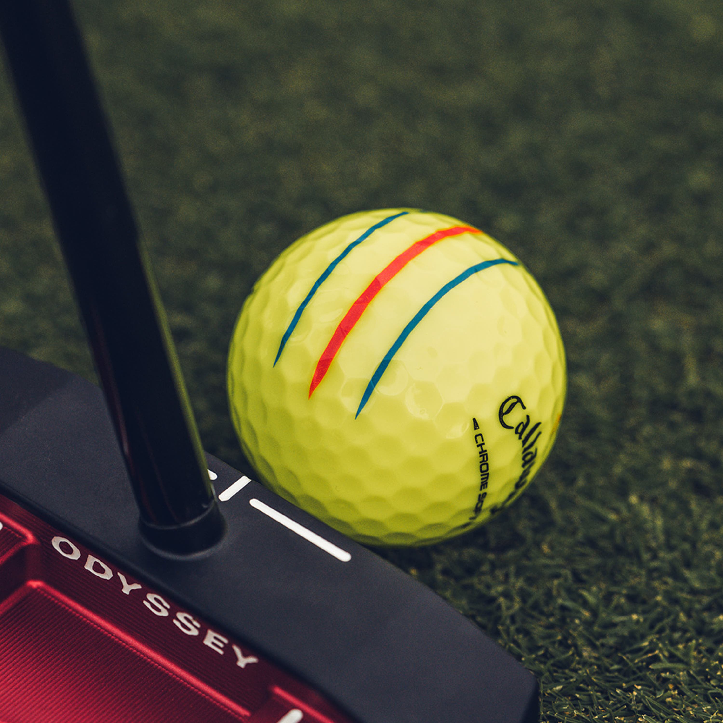 Chrome Soft is engineered for outstanding tour performance with new speed technology for players who want fast ball speeds, higher ball flight, greenside control and soft feel. Plus, alignment-enhancing Triple Track technology on a high visibility yellow ball.